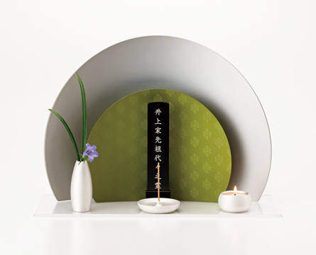 | 今は亡き大切な人を、日常の中に感じられる「心のよりどころ」としての仏壇です。現代の新しい住居や家族にむけて、仏間の代わりに、リビングや寝室など、普段の生活の場に置くことを想定しました。また三具足を構成する花や香、灯りは、常日頃から暮らしに関わり、豊かな時間を生みだしてくれます。 リンク>>> nonnon公式サイト 2008/株式会社小泉製作所 |